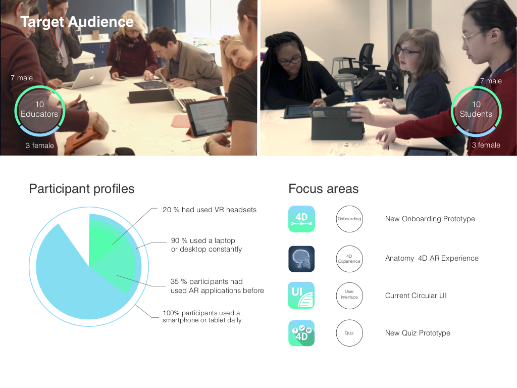 Gain insight into the efficacy of the new on-boarding and quiz prototypes and obtain feedback on key areas of the current Anatomy 4D experience. Access the full user testing report here.